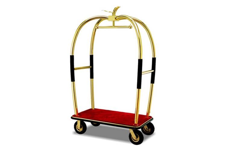 Polished Brass Hotel Luggage Cart For Bell Boy